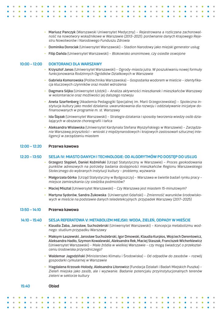 Zapraszamy zarówno doświadczonych badaczy i praktyków, jak i młodych naukowców reprezentujących różnorodne dyscypliny – wszystkich, których zainteresowania naukowe skupiają się na Warszawie.